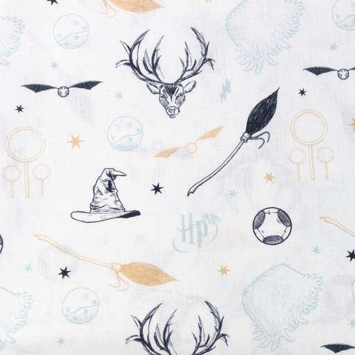 Baumwolle Harry Potter Logo und Sprechender Hut auf Weiß Lizenz Digital