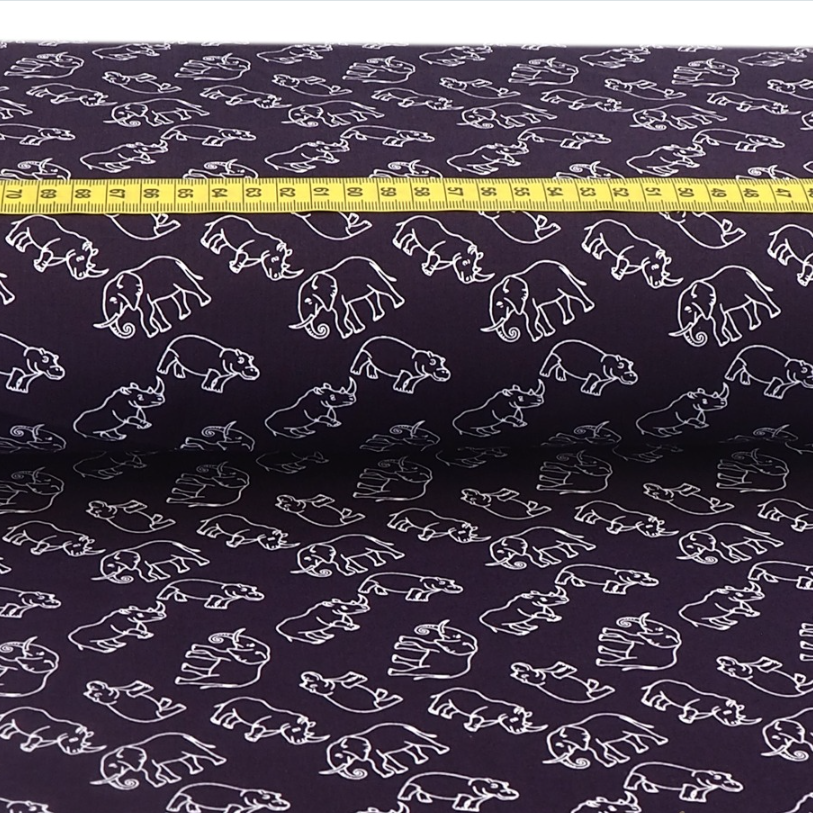 Baumwolle Hippos & Elephants Aubergine