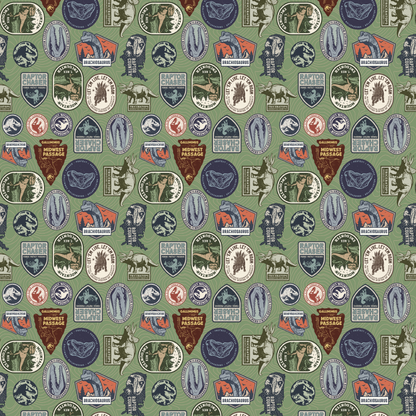 Baumwolle Jurassic Park Symbole Grün Lizenz Digital
