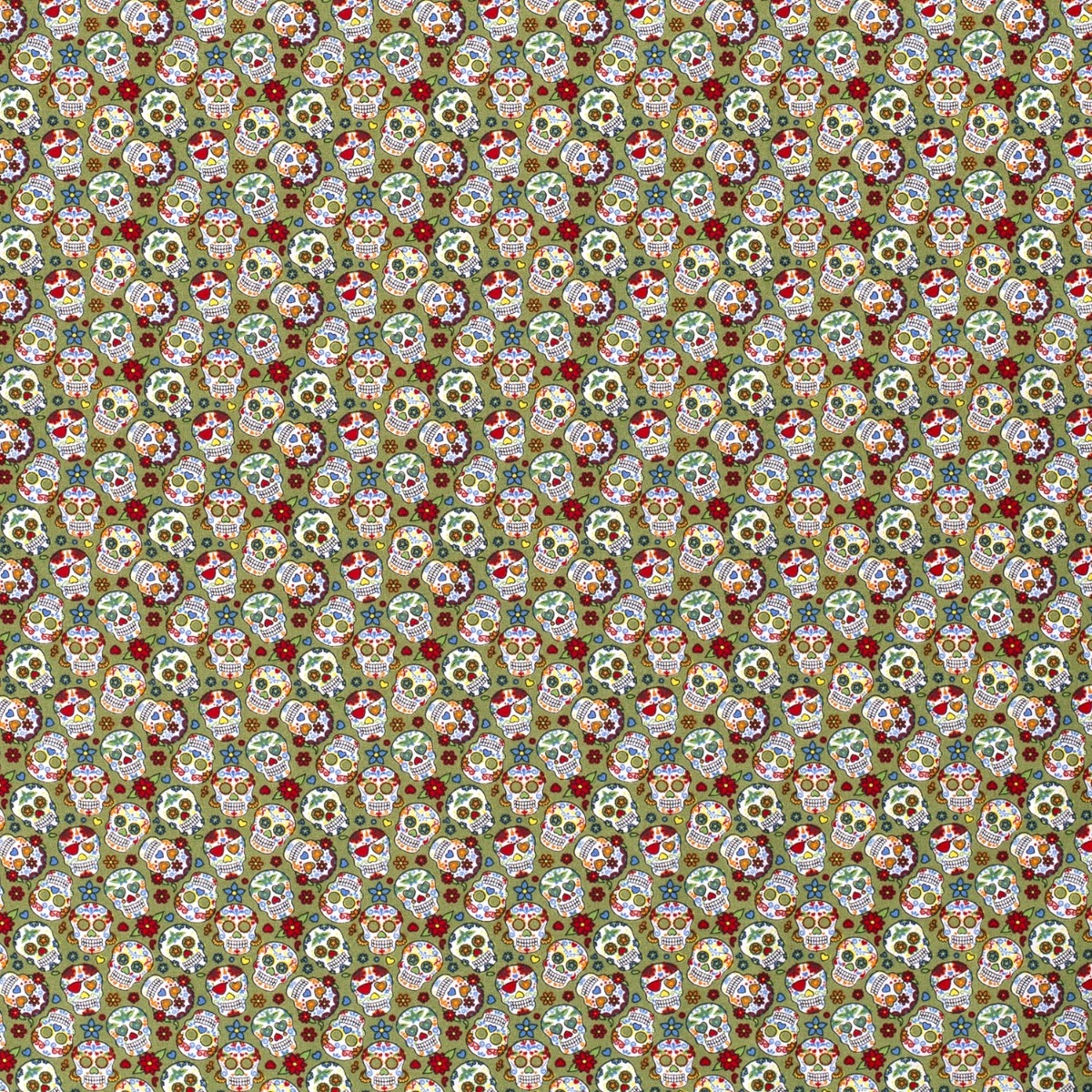 Baumwolle Kleine Blumen Skulls auf Khaki
