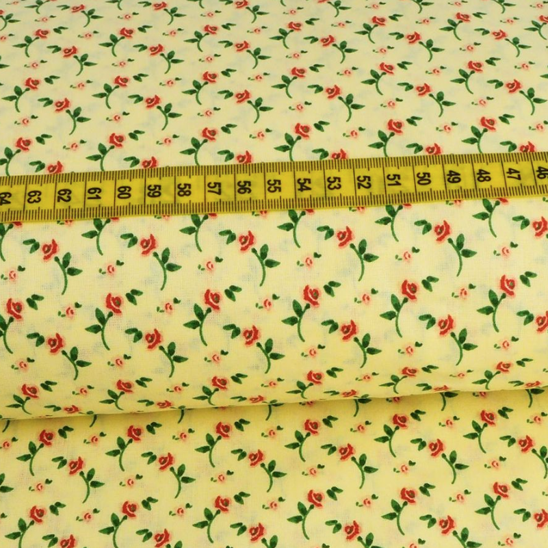 Baumwolle Kleine Rosen auf Hellgelb