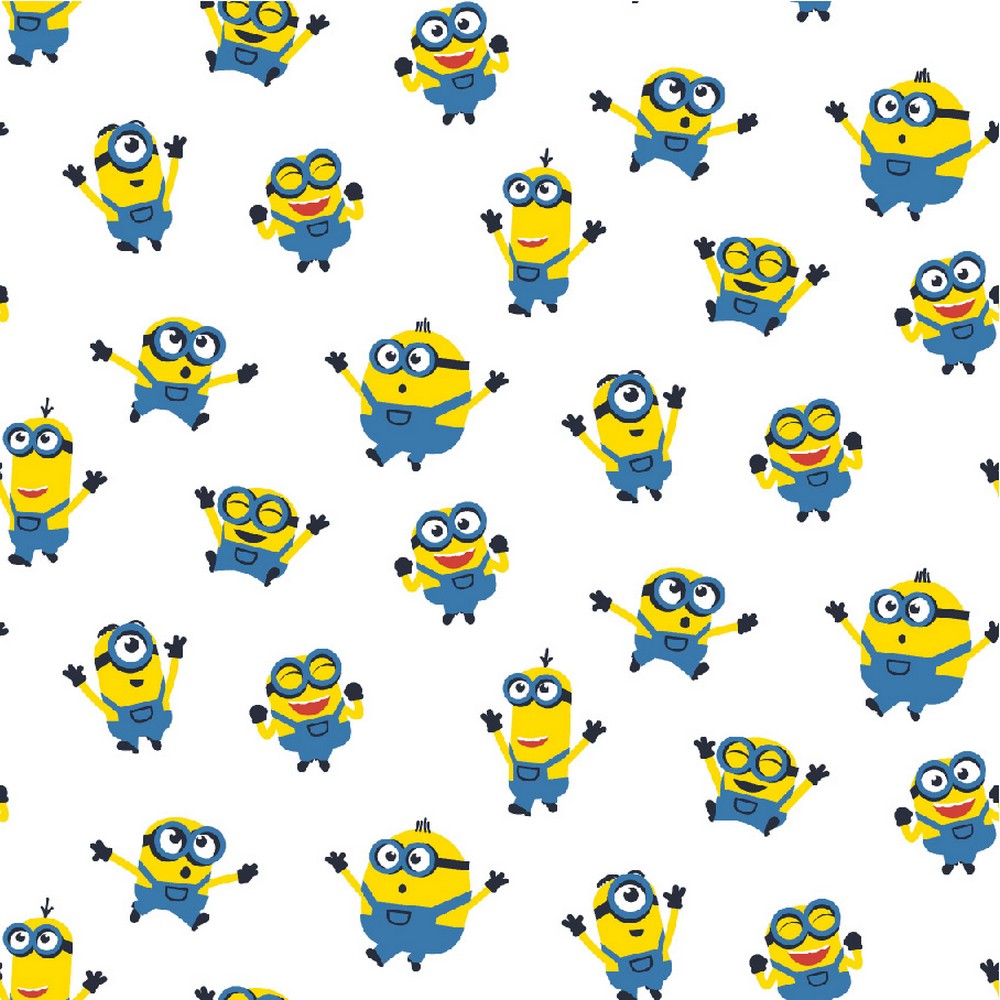 Baumwolle LIZENZ Aufgeregte Minions auf Weiß