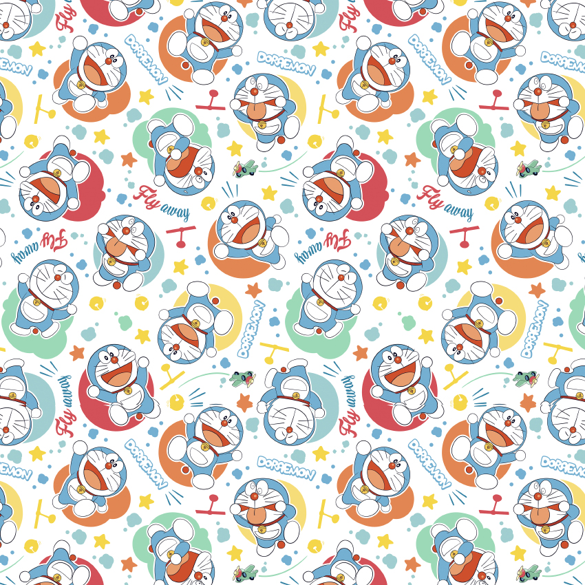 Baumwolle LIZENZ Doraemon Die Roboterkatze auf Weiß Digital
