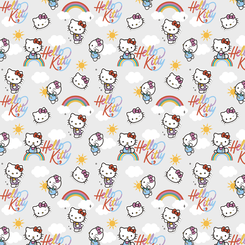 Baumwolle LIZENZ Hello Kitty auf Hellgrau Digital