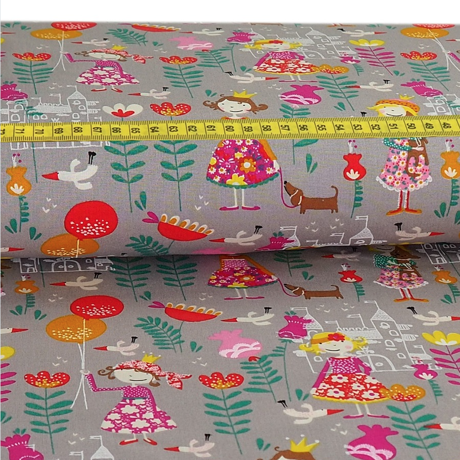 Baumwolle Märchenland auf Grau Überbreite