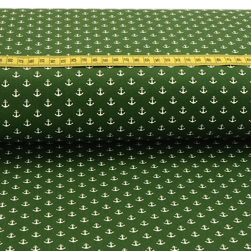 Baumwolle Maritim Kleine Anker Dunkelgrün
