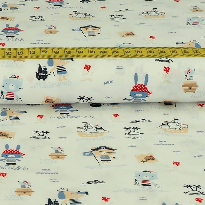 Baumwolle Maritime Welt auf Cremeweiß BIO