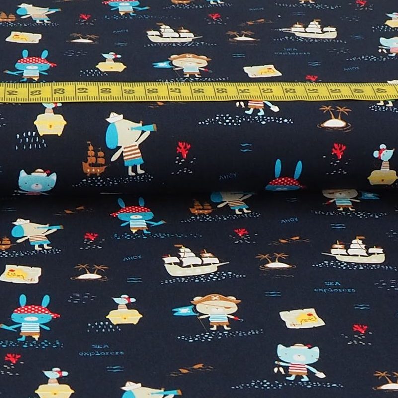 Baumwolle Maritime Welt auf Dunkelblau BIO