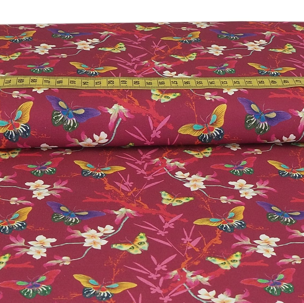 Baumwolle Nice Butterflies auf Fuchsia Digital ÜBERBREITE
