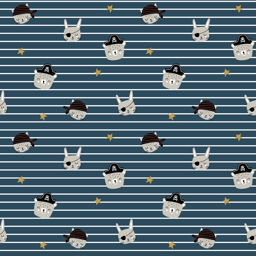 Baumwolle Piratentiere auf Streifen Jeansblau