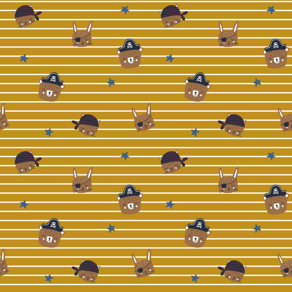 Baumwolle Piratentiere auf Streifen Senfgelb