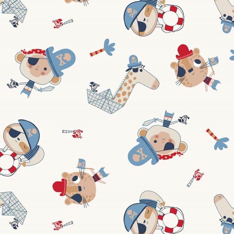 Baumwolle Popeline - Kleine Piratentiere auf Ecru