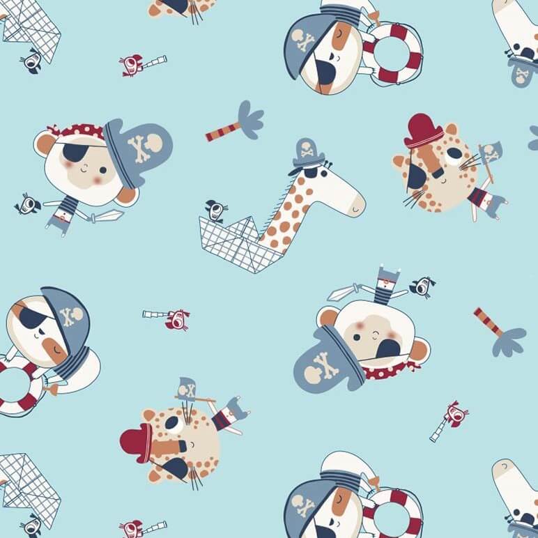 Baumwolle Popeline - Kleine Piratentiere auf Hellblau