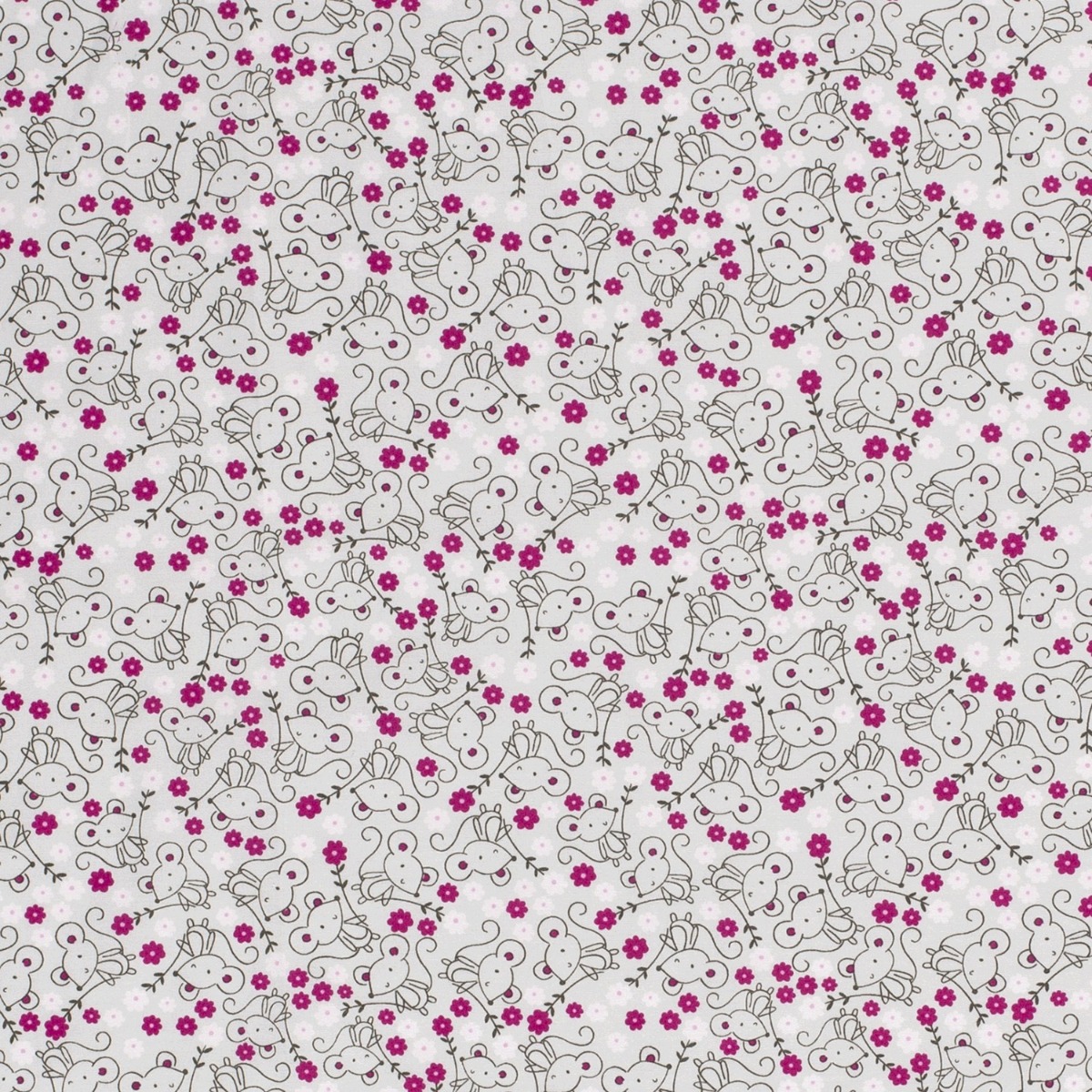 Baumwolle Süße Maus auf Aluminium Hellgrau