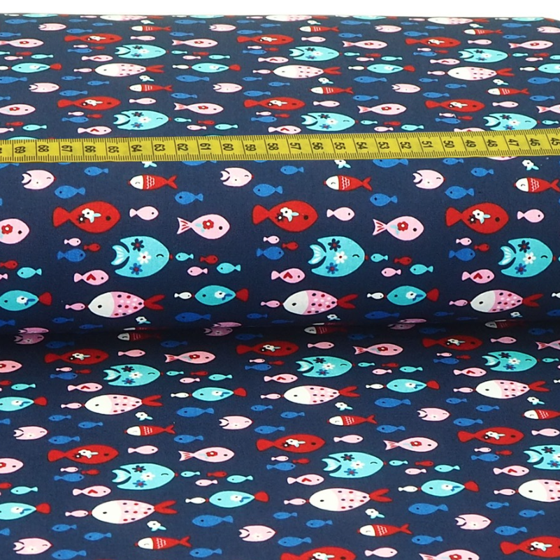 Baumwolle Sweet Fishes Dunkelblau
