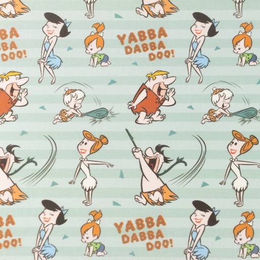 Baumwolle The Flinstones auf Streifen Mint Lizenz Digital