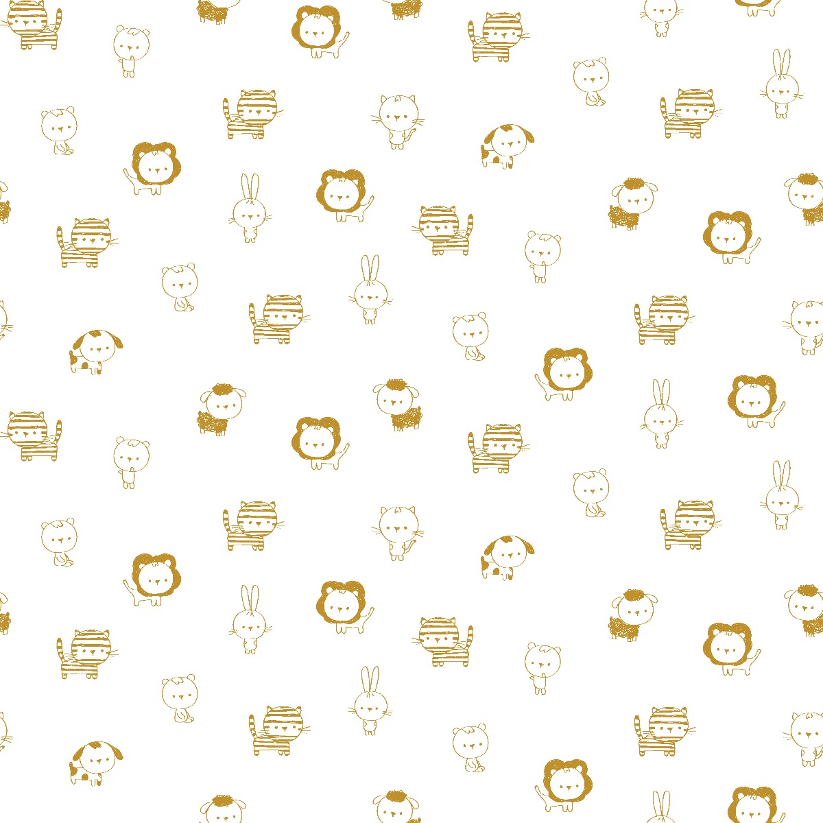 Baumwolle Tierchen Senfgelb auf Cremeweiß