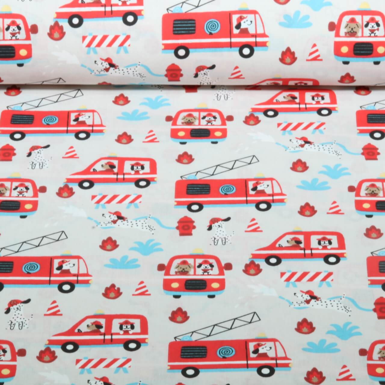 Baumwoll-Webware - Tierische Feuerwehr Grau