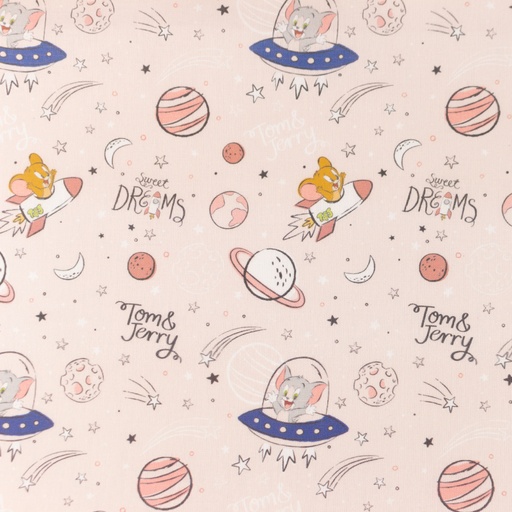 Baumwolle Tom & Jerry Kids im All auf Hellrosa Lizenz Digital