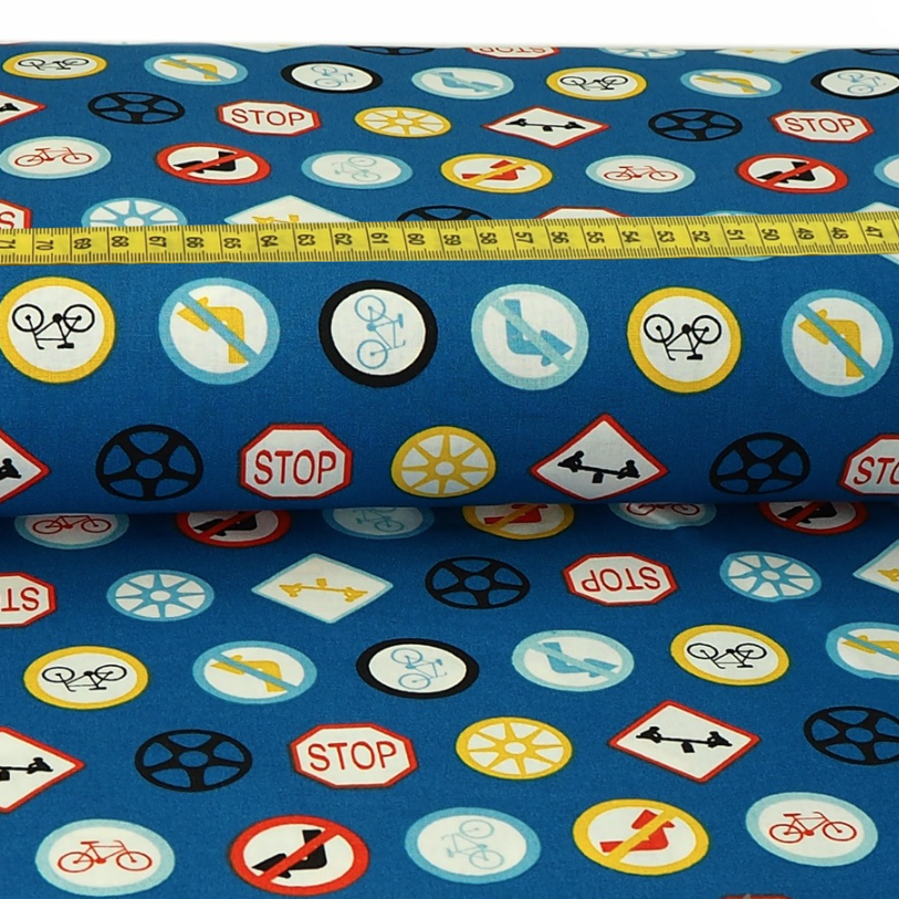 Baumwolle Verkehrsschilder auf Rauchblau Überbreite