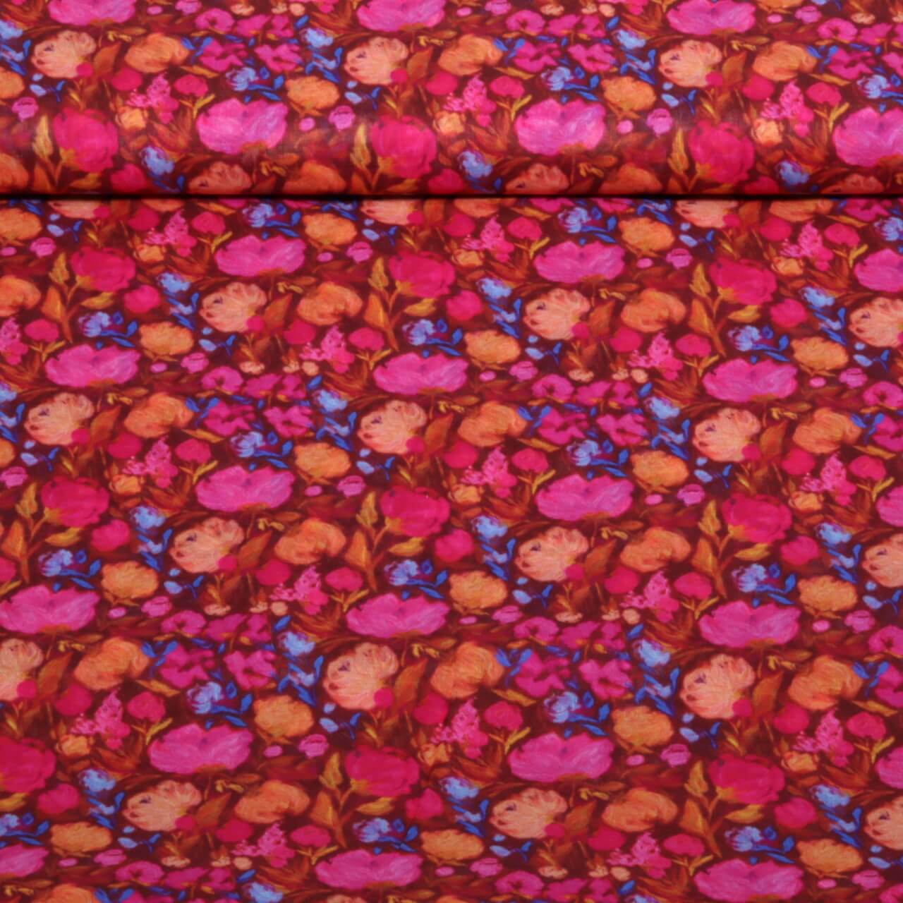 Baumwolle Voile - Digital Blumen Bordeauxrot