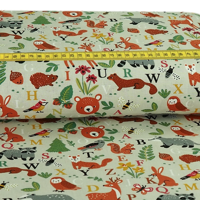 Baumwolle Waldtiere & Buchstaben auf Beige