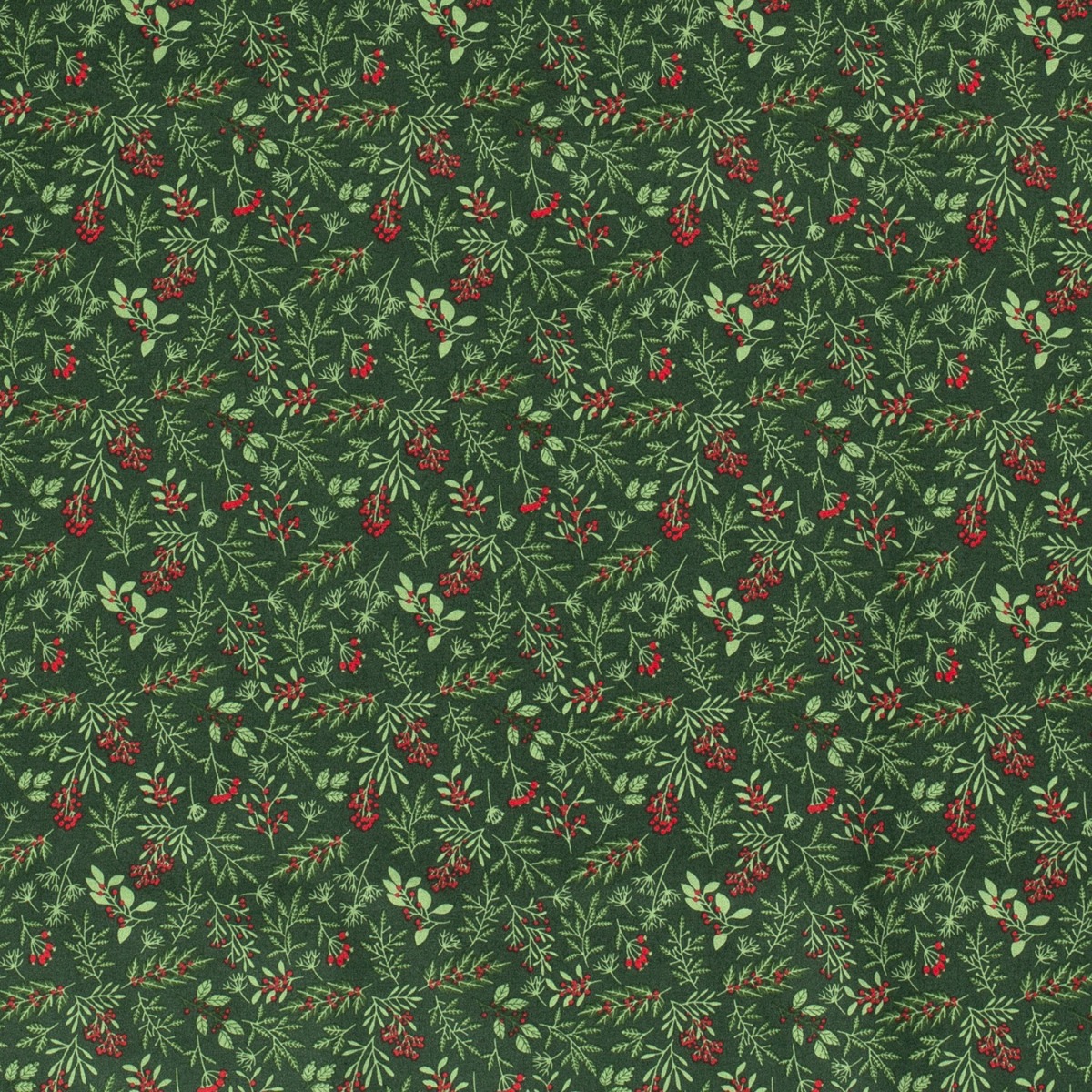 Baumwolle WEICHNACHTEN Mistelzweige & Blätter auf Dunkelgrün