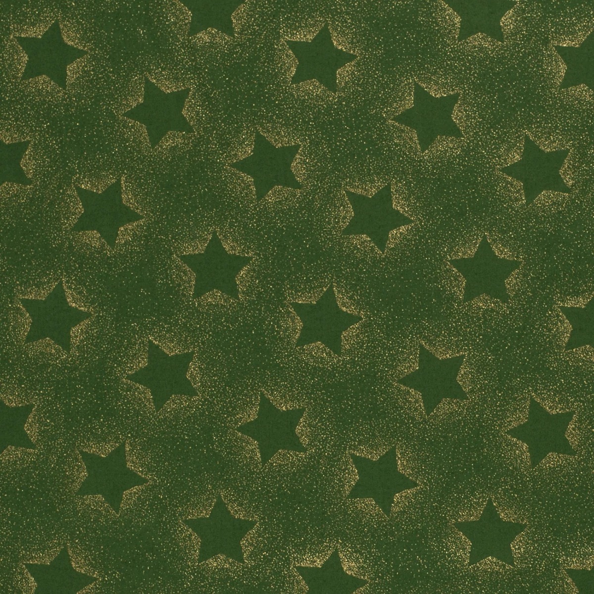 Baumwolle WEIHNACHTEN Foliendruck Goldstaub Sterne auf Dunkelgrün