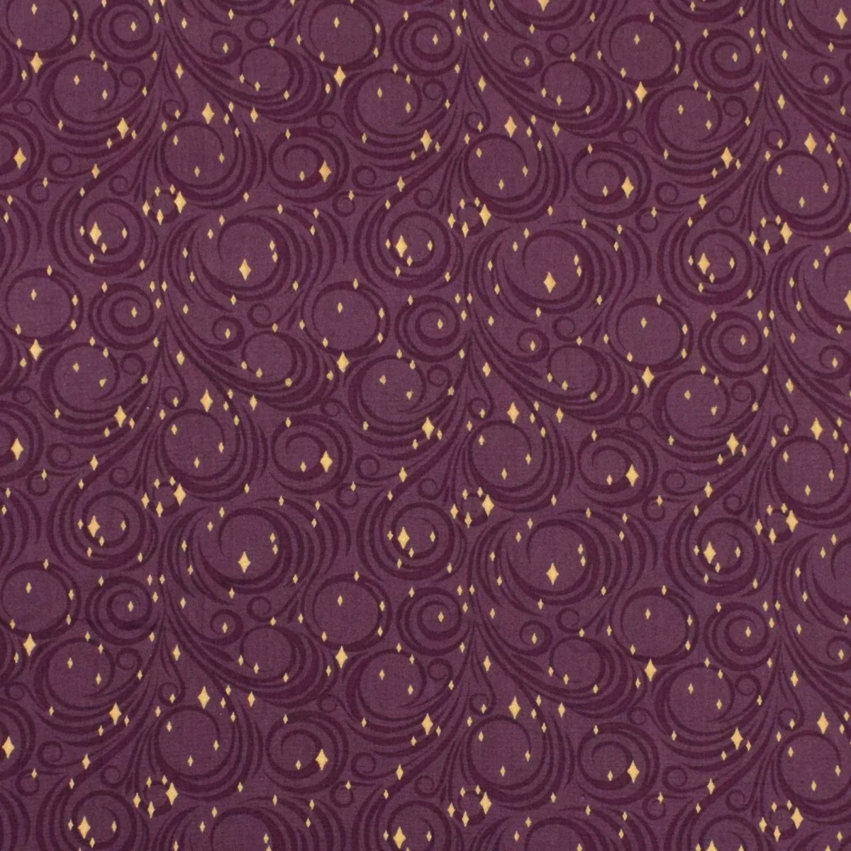 Baumwolle WEIHNACHTEN Foliendruck Schnörkel und Rauten auf Bordeaux
