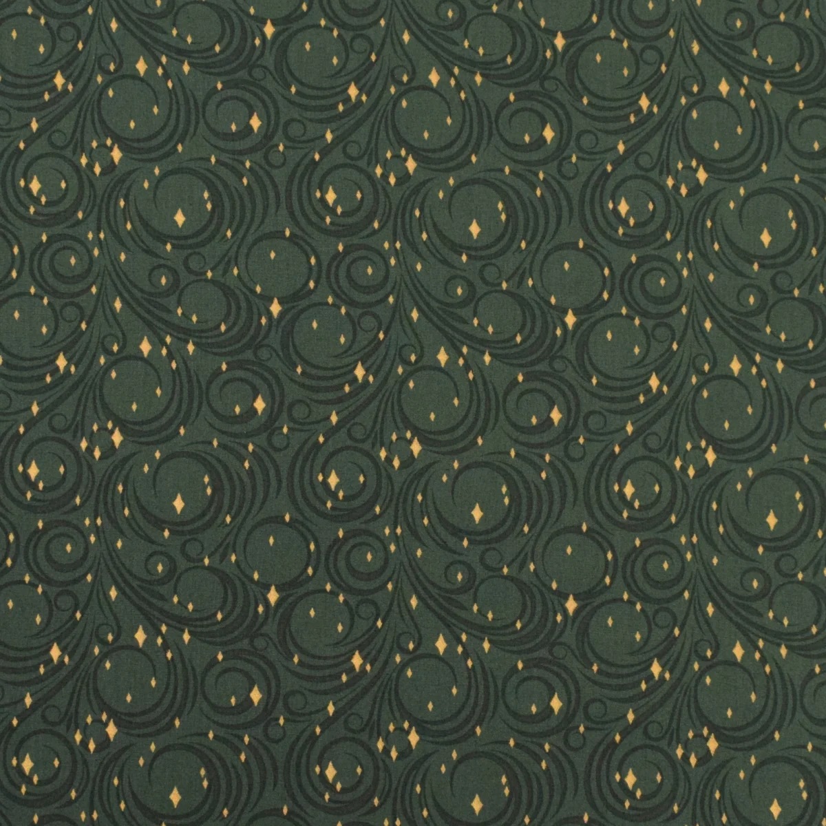 Baumwolle WEIHNACHTEN Foliendruck Schnörkel und Rauten auf Tannengrün
