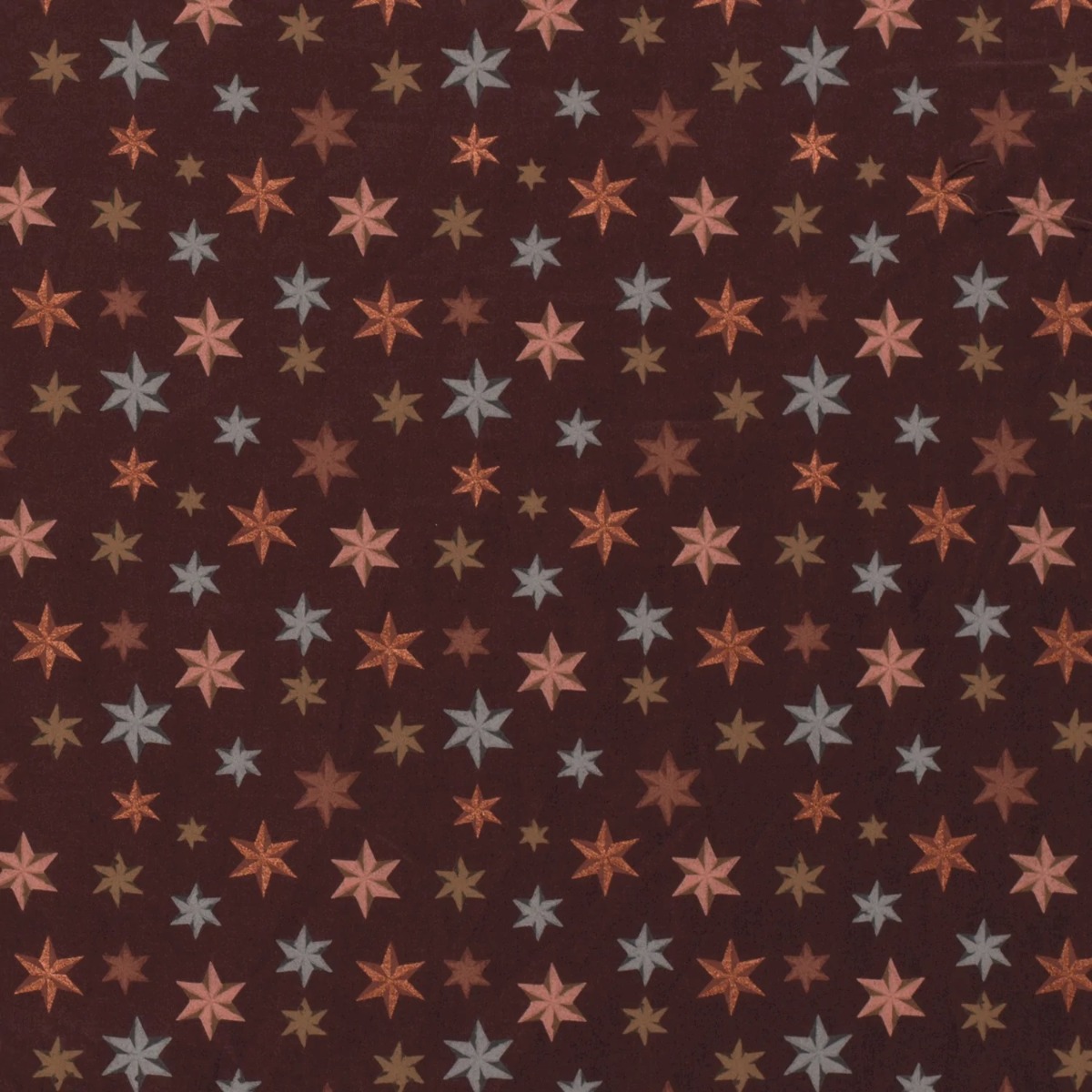 Baumwolle WEIHNACHTEN Foliendruck Sternenschauer auf Rotbraun