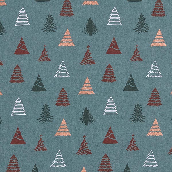 Baumwolle WEIHNACHTEN Foliendruck Tannenbäume auf Dunkelmint