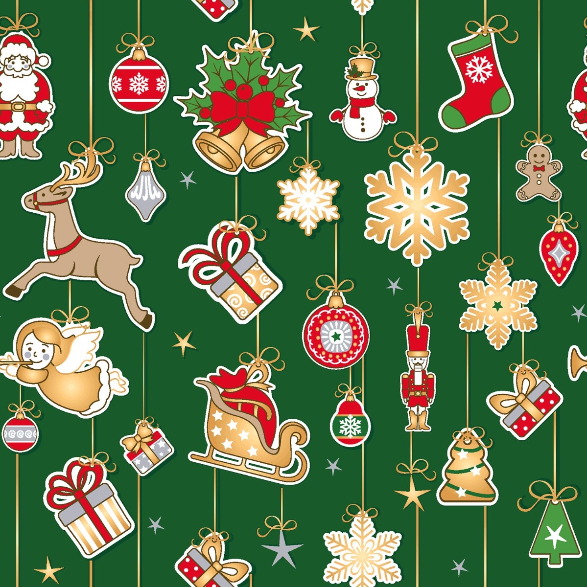 Baumwolle WEIHNACHTEN Foliendruck Weihnachtsaufhänger auf Dunkelgrün