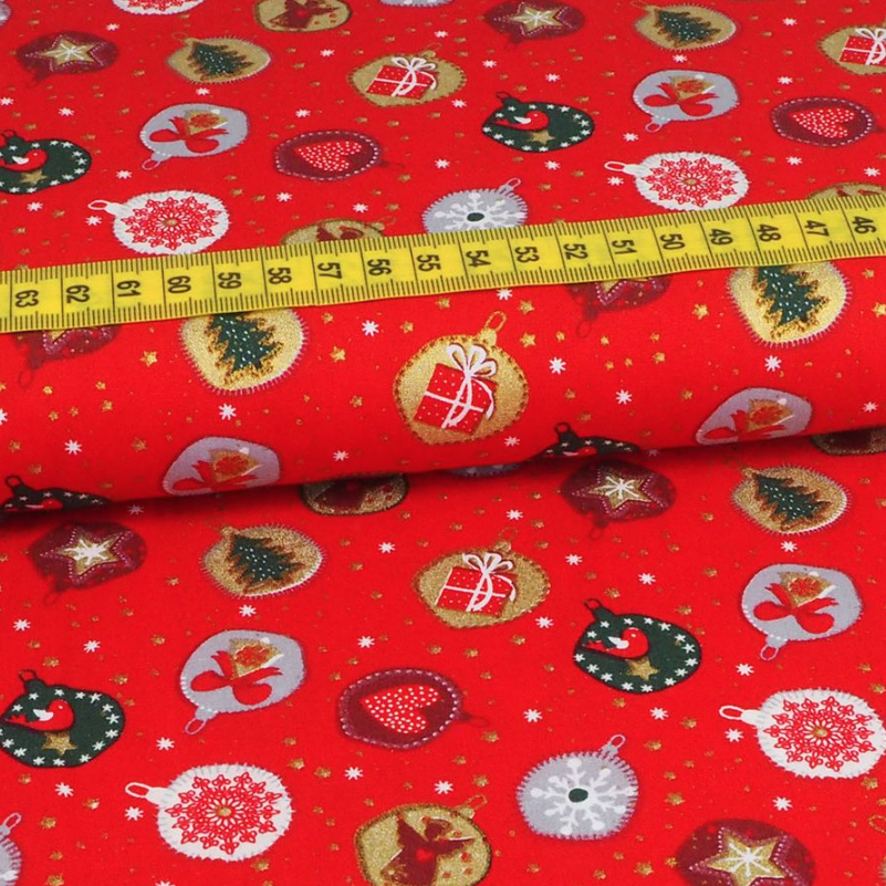 Baumwolle Weihnachten Golddruck Christmas Balls auf Rot