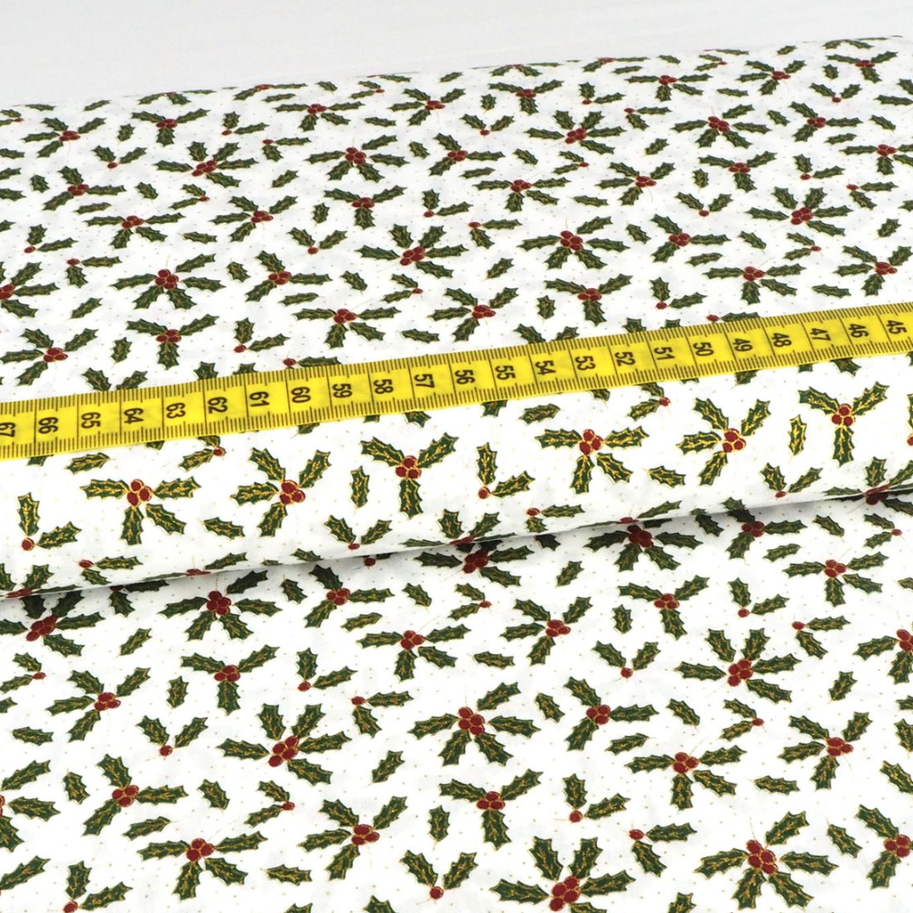 Baumwolle Weihnachten Golddruck Zweige auf Creme