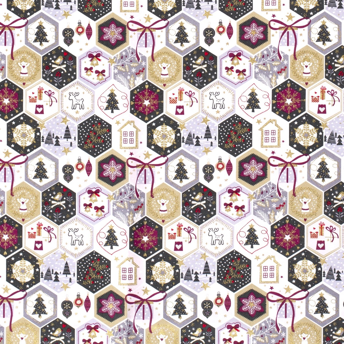 Baumwolle WEIHNACHTEN Golddruck Motive in Waben auf Hellrosa