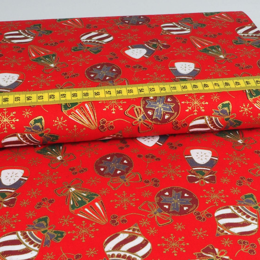 Baumwolle Weihnachten Golddruck Ornamente Rot