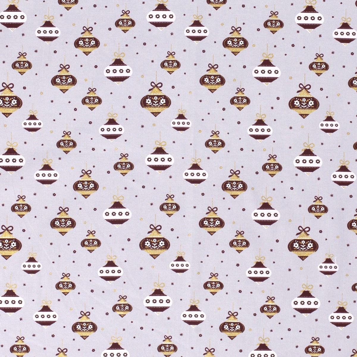 Baumwolle WEIHNACHTEN Golddruck Spitze Kugeln auf Hellgrau