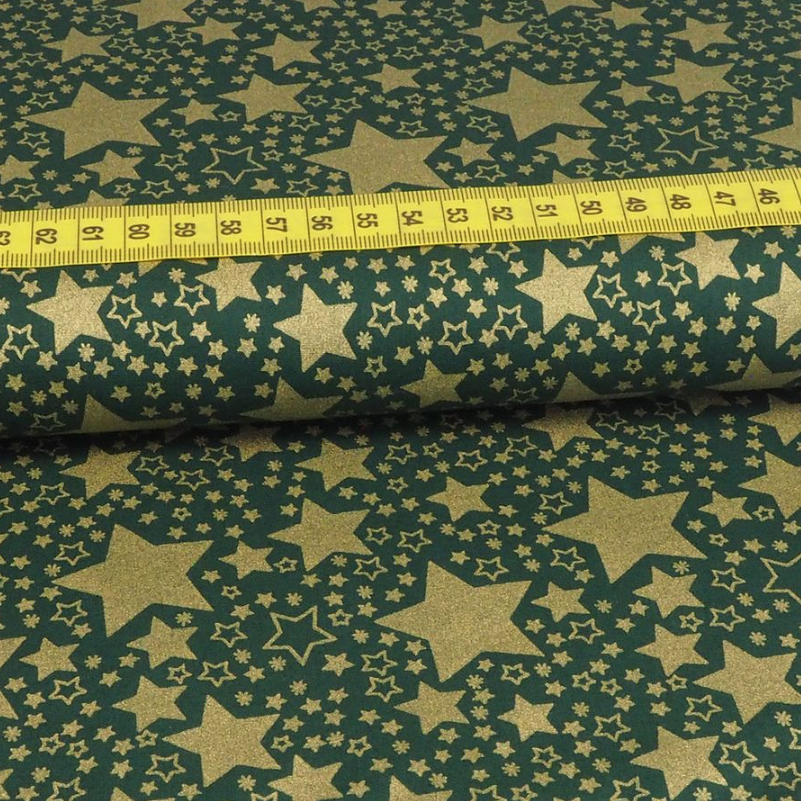 Baumwolle Weihnachten Golddruck Sternenrausch Grün
