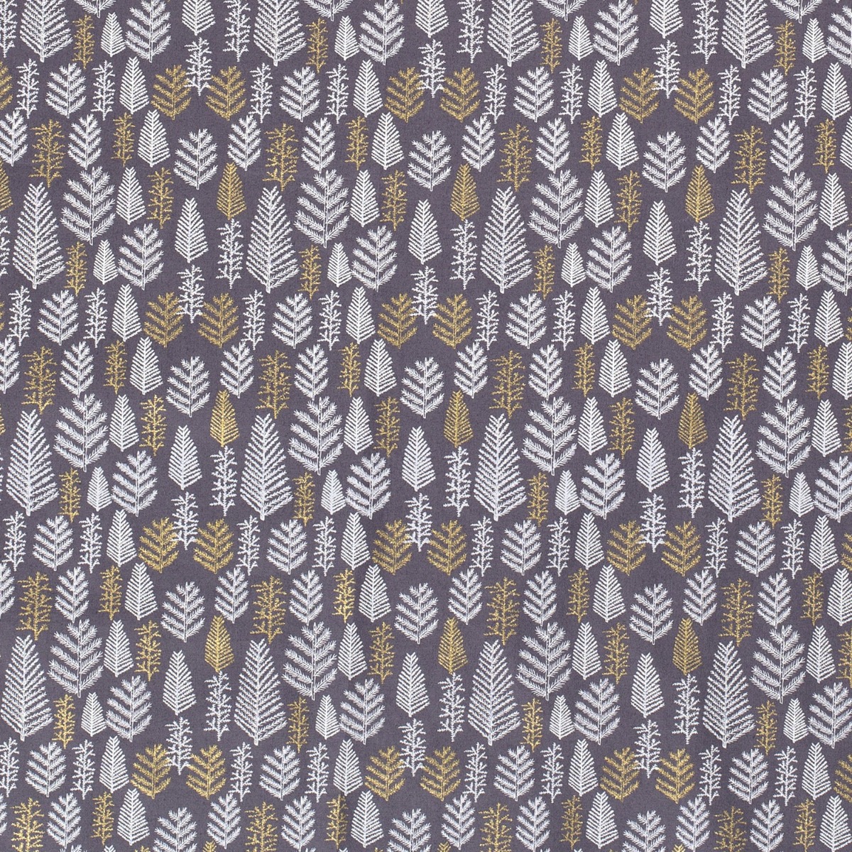 Baumwolle WEIHNACHTEN Golddruck Tannenbäumchen auf Dunkelgrau