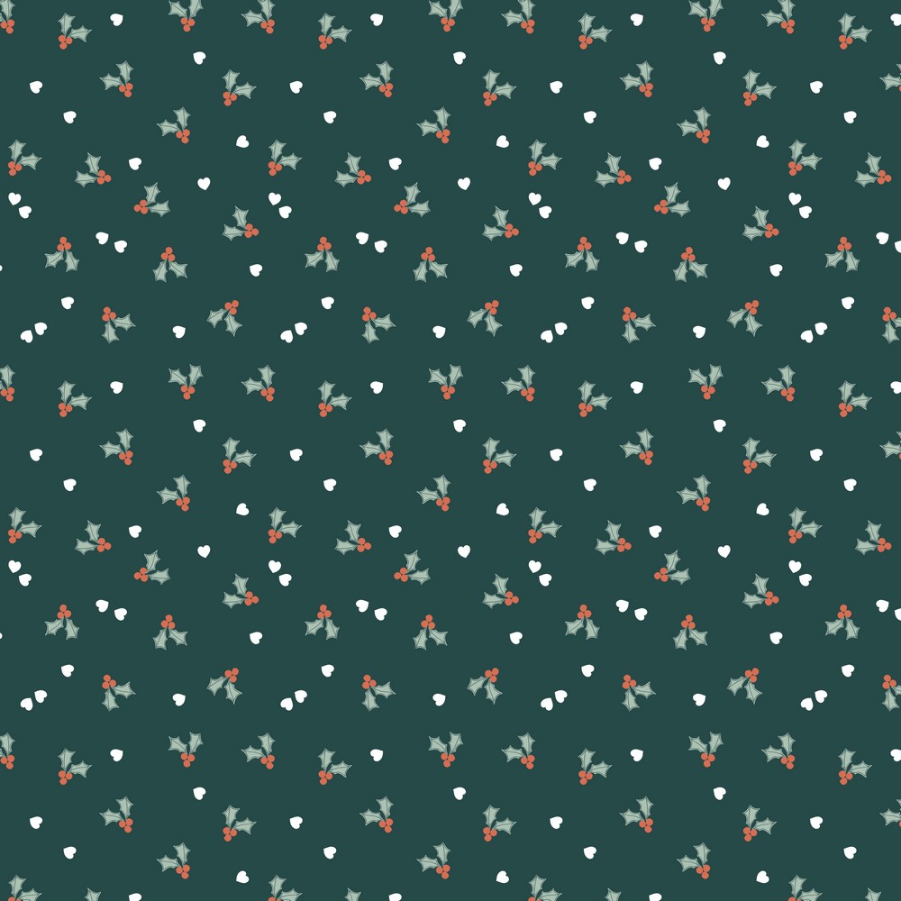 Baumwolle Weihnachten Kleine Mistelzweige auf Dunkelgrün
