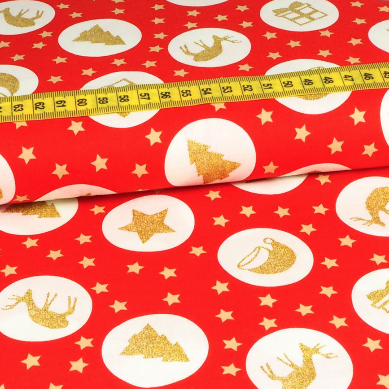 Baumwolle WEIHNACHTEN Motive im Kreis Rot