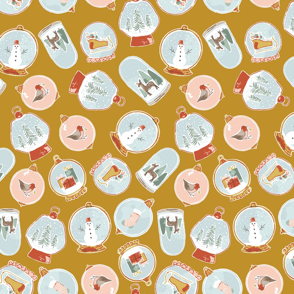 Baumwolle WEIHNACHTEN Weihnachtskugeln auf Senfgelb