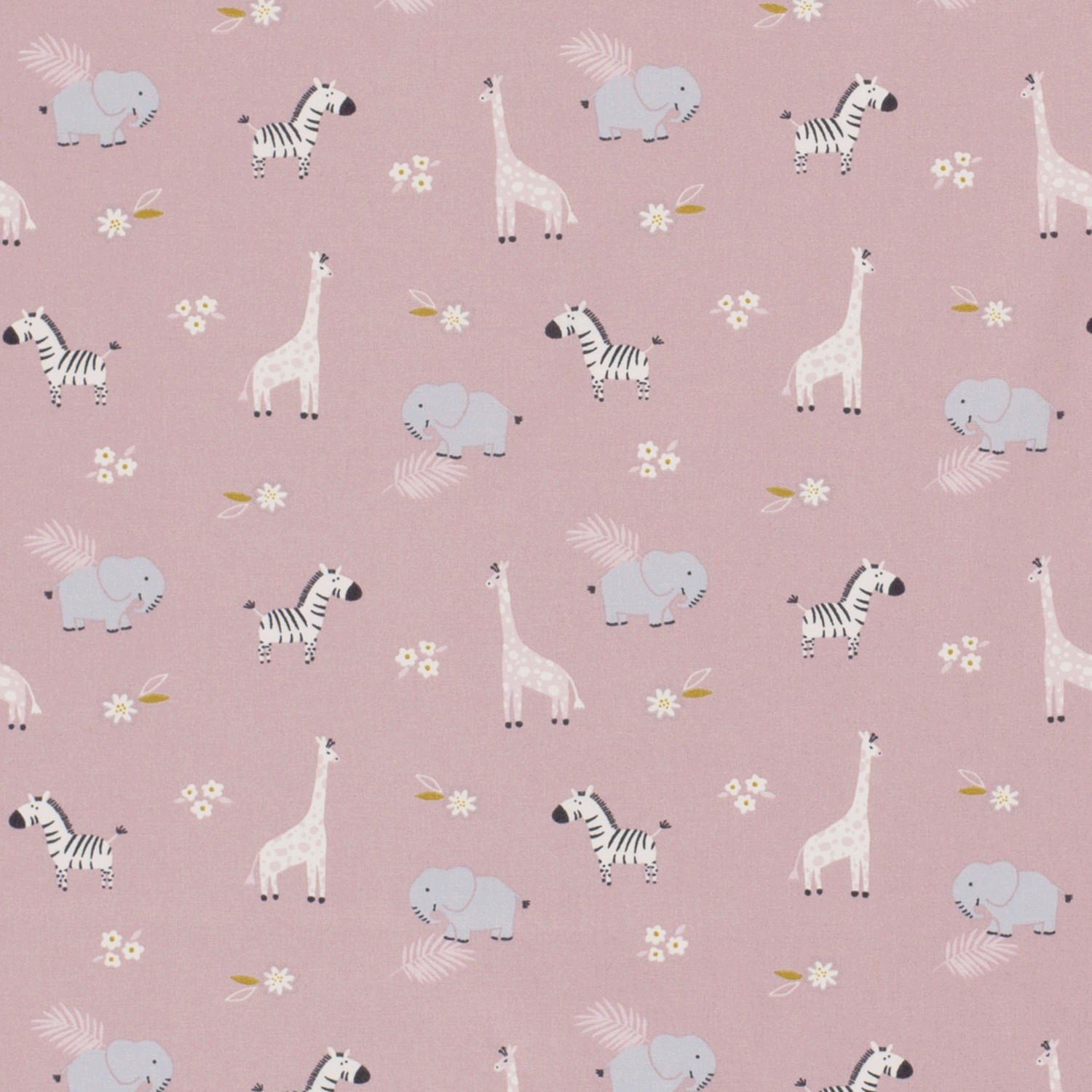 Baumwolle Wildtiere in den Blumen auf Altrosa