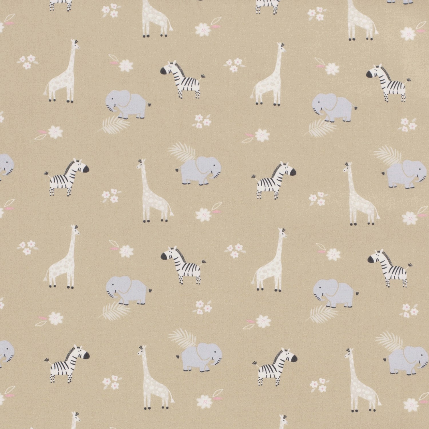 Baumwolle Wildtiere in den Blumen auf Hellbraun