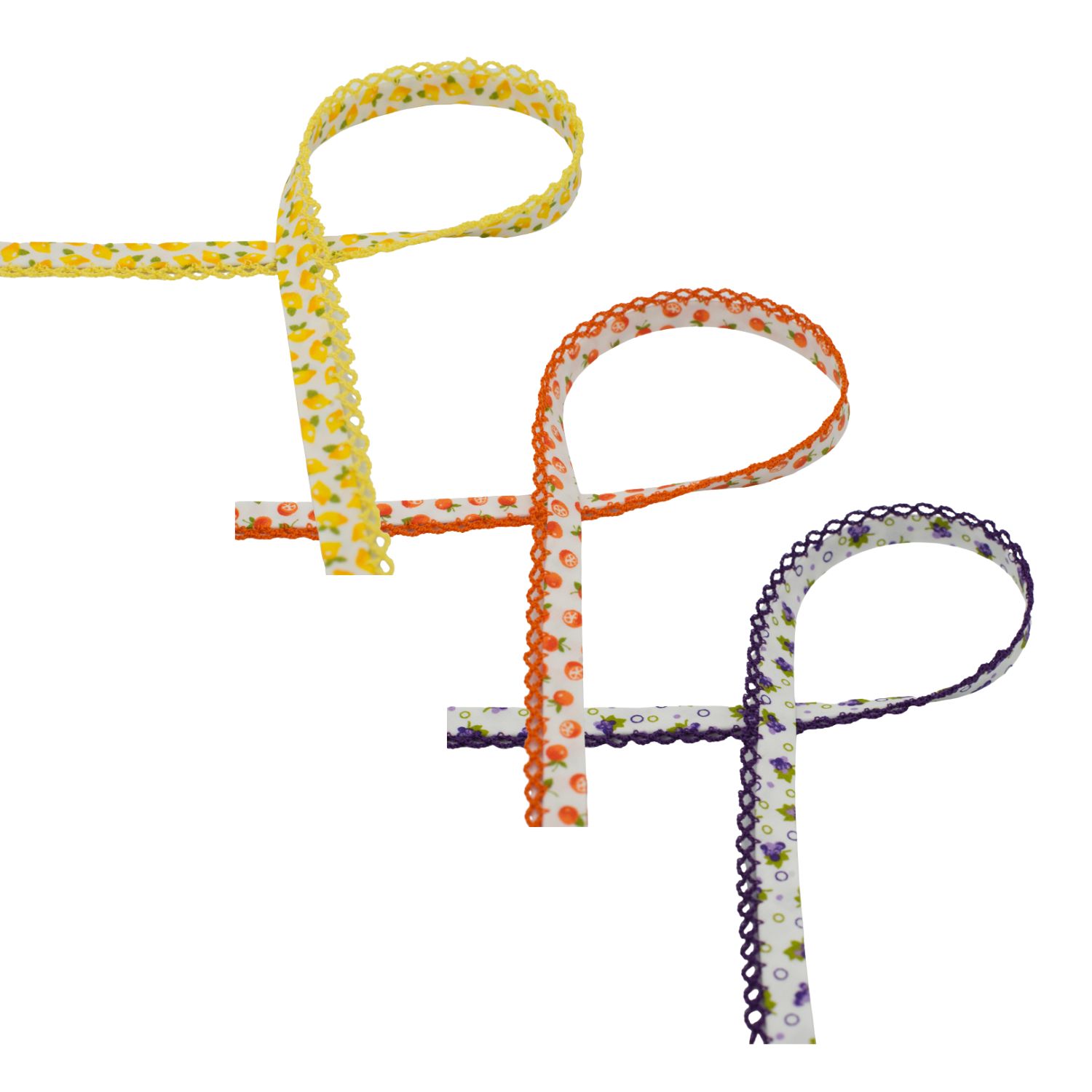 Baumwollschrägband Früchte 12mm - Meterware