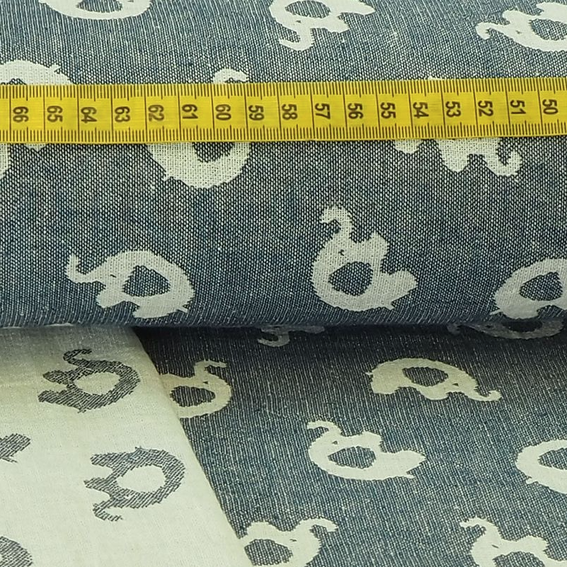 Baumwollstoff Jacquard Double Face Elefanten auf Marine