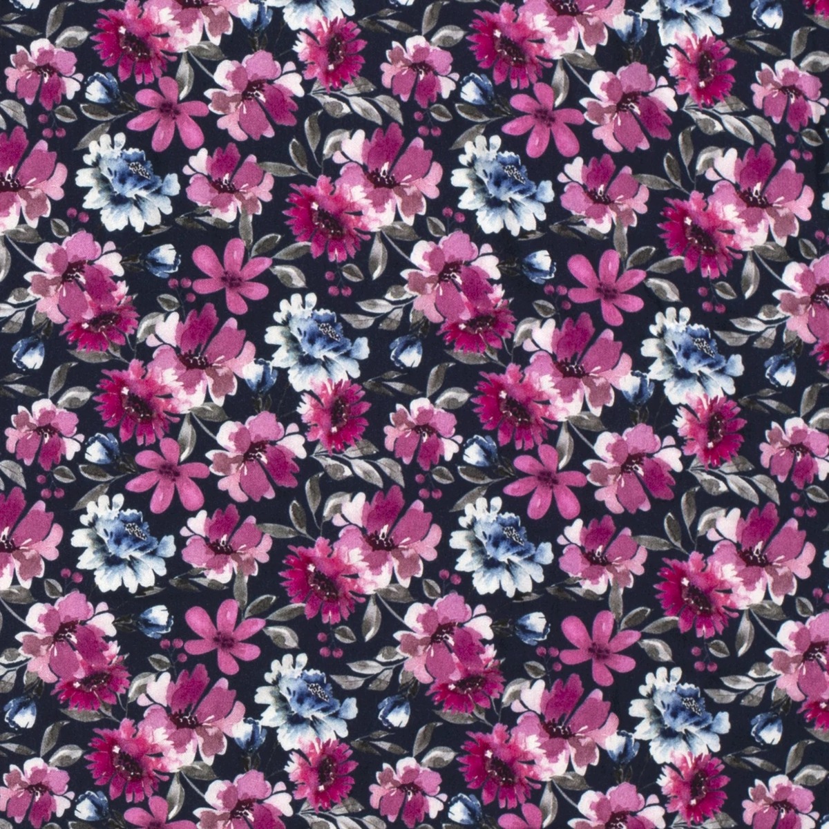 Bekleidungsstoff Viskose Blumen Lene auf Dunkelblau