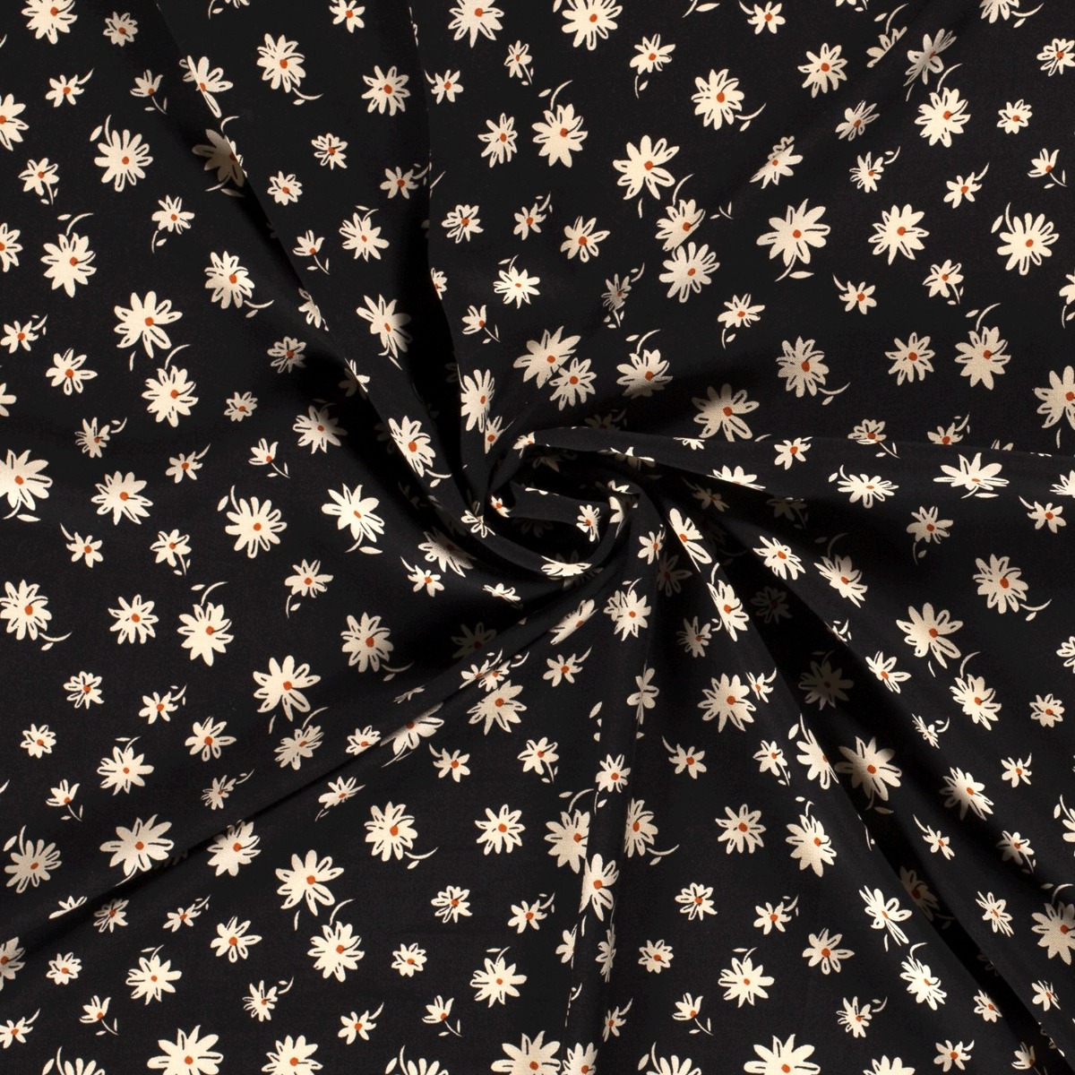 Bekleidungsstoff Viskose Blumen Margareta auf Schwarz