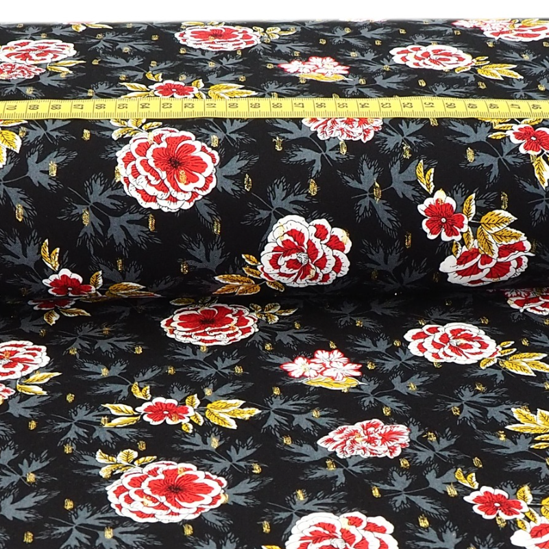 Bekleidungsstoff Viskose Radiance Blütenköpfe auf Schwarz GLITZER